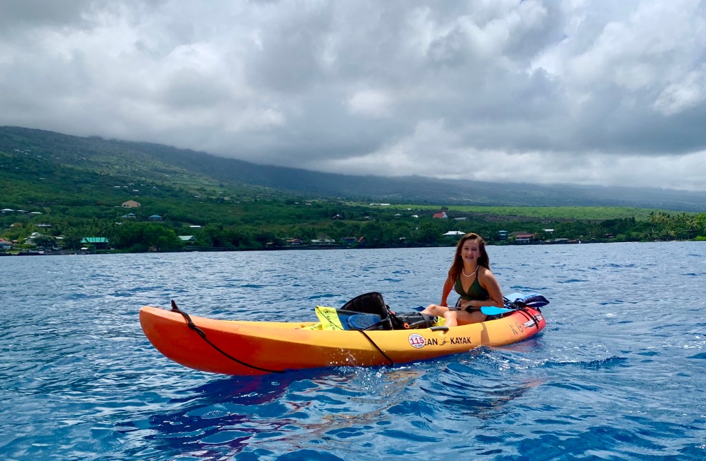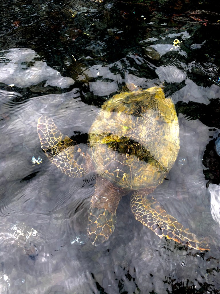 The ocean waves were not as kind to us on our journey back to land. The Pacific Ocean seems to have quite the temper and can’t decide whether she wants to bash you against the rocks or sweep you out to sea. Luckily, we were able to navigate her mood swings and safely made it to our starting point without any trouble, just sore muscles! Upon pulling our kayaks back onto the launching point, a group of green sea turtles were lazily munching on algae growing on the rock, swimming right past us, as if we weren’t even there!