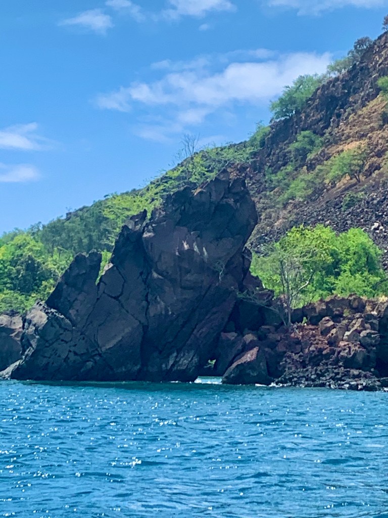 Our adventures today landed us in Kealakekua Bay. The drive from our rental house took us down winding, twisting, backroads with towering banana trees, ferns, and tropical flowers on either side. Wild chickens and mongooses darted to and fro across the street. Our GPS navigated us to a one-lane road that ended at what appeared to be someone’s driveway. “Great! Thanks again Siri!” (Sometimes, I think she enjoys getting us lost) But just when we are about to turn around, a friendly local greeted us and assured us we were in the right place.