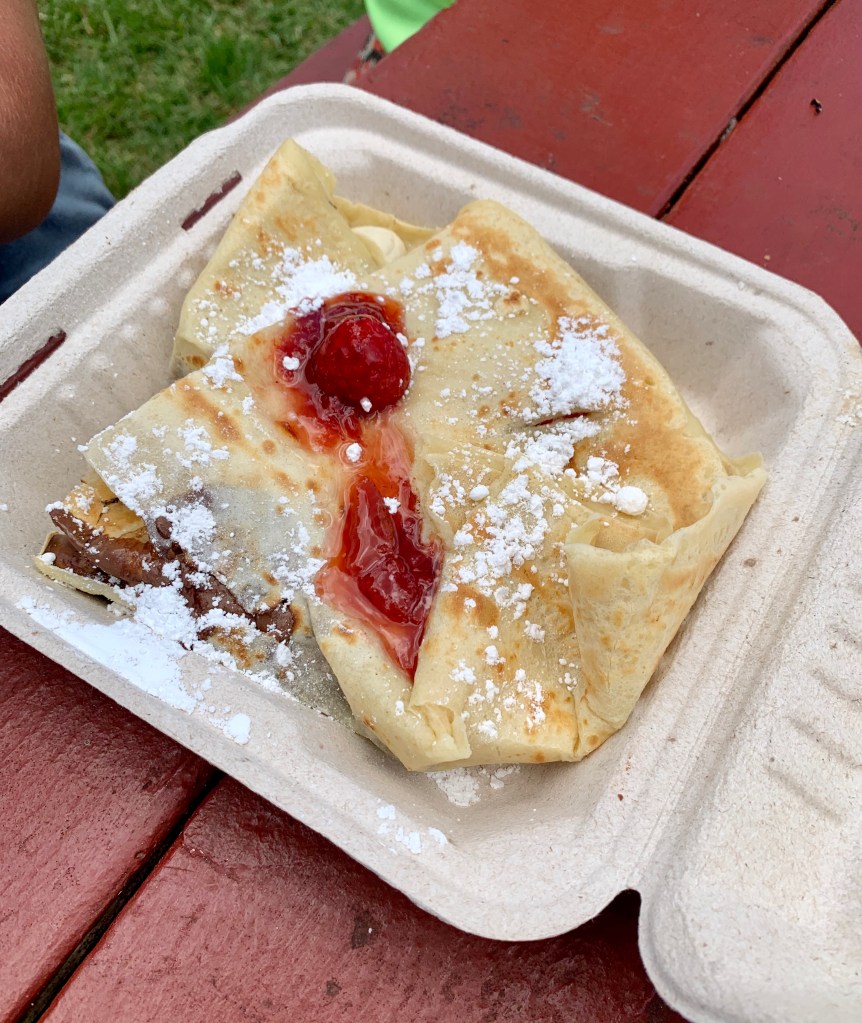 Meanwhile, Annabelle and Abigail chose a sweeter approach to filling their hearts and stomachs-decadent strawberry-banana-nutella crepes.