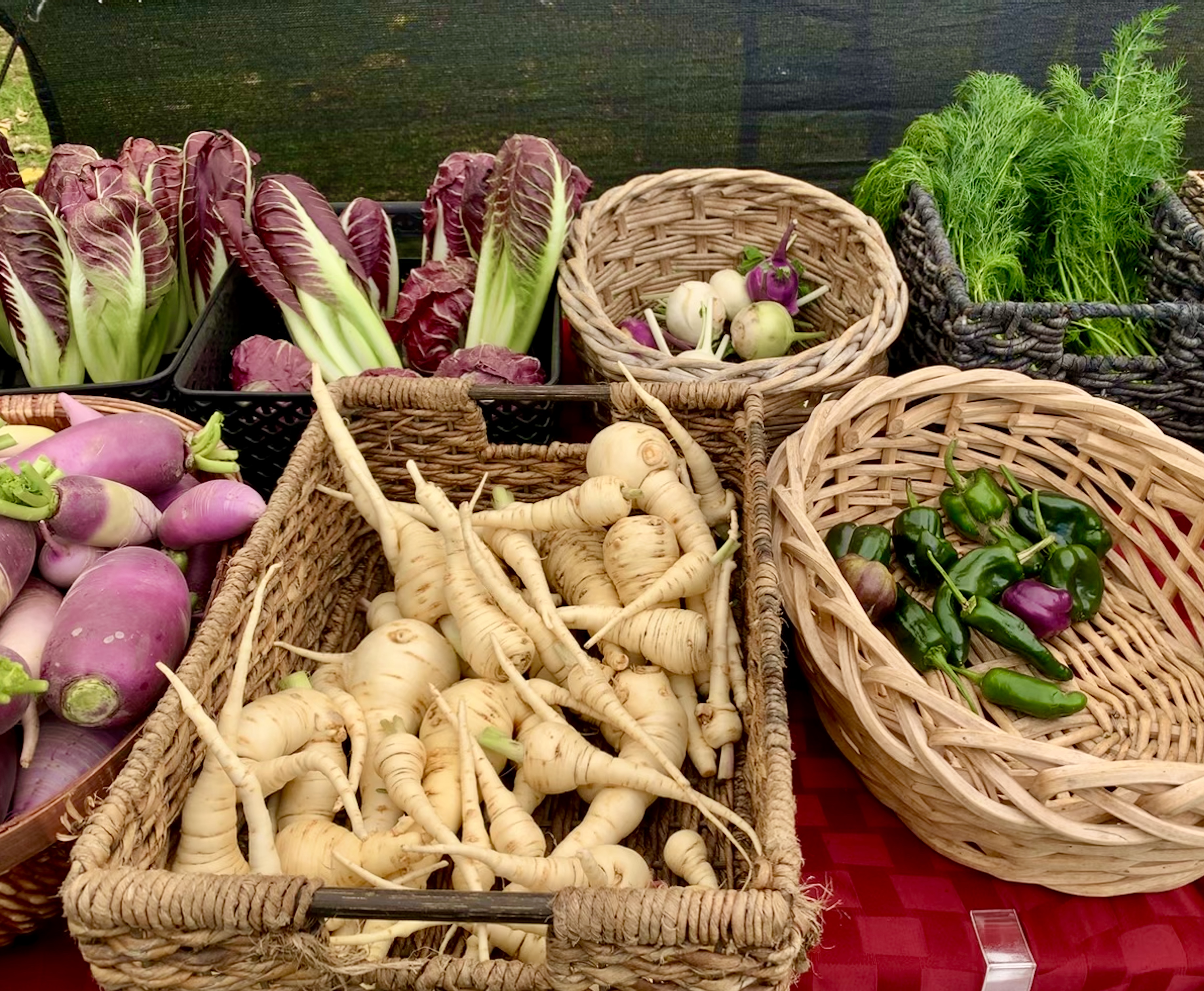 After perusing all the tents, we eventually settle on samples of local, organic honey (still oozing from the honeycomb), homemade salsa, hot sauce (at Ben’s request), and a selection of brilliantly colored fruits and vegetables, to include a rambutan (think hairy/spiked/strawberry that taste like a grape).