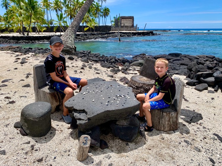 One of the joys of homeschooling is FLEXIBILITY! I love when the weather is just right (which happens a lot in Hawaii) and you can soak up sun and knowledge simultaneously, while taking your classroom outside. Today we ventured to Pu’uhonua o Honaunau National Historical Park, otherwise known as Place of Refuge.