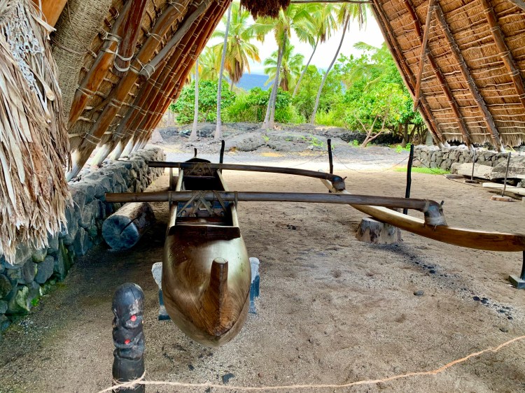 During the recorded walking tour, our favorite stop was the Ka’humanu Stone (which somehow I didn’t end up taking a picture of). Legend holds that Queen Ka’ahumanu, the favorite wife of Kamehameha, was beautiful and admired by all the other chiefs. In a fit of jealousy, Kamehameha accused her of infidelity. Fearing for her life, she swam to Pu’uhonua and hid under a giant stone. In search of his wife, Kamehameha began burning down villages, where he thought she might be seeking refuge. It was eventually rumored that she may be at Pu’uhonua. Upon arriving there, Kamehameha still was unable to find his wife, until it was noticed that her favorite dog kept barking at a large stone. It was then that her whereabouts was discovered. Fortunately, she and her husband reconciled and only a few villages paid the price for the lovers’ quarrel.