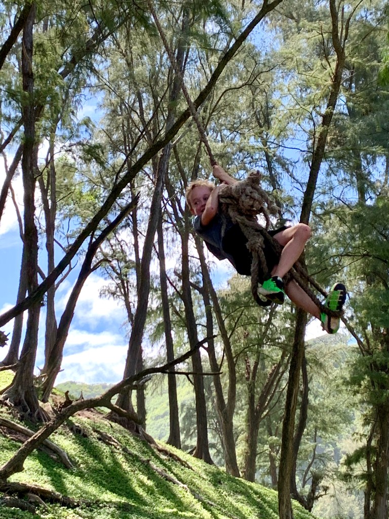 Like stepping through the wardrobe into Narnia, Polol’u’s ambiance is that of a magical world, where you speak in hushed toned as to not disturb the sprites that are surely napping inside a flower’s bloom. However, the squeals and laughter from my children’s delight as they swing wildly across the weathered rope swings quickly obliterates all notions of a hidden dream world.