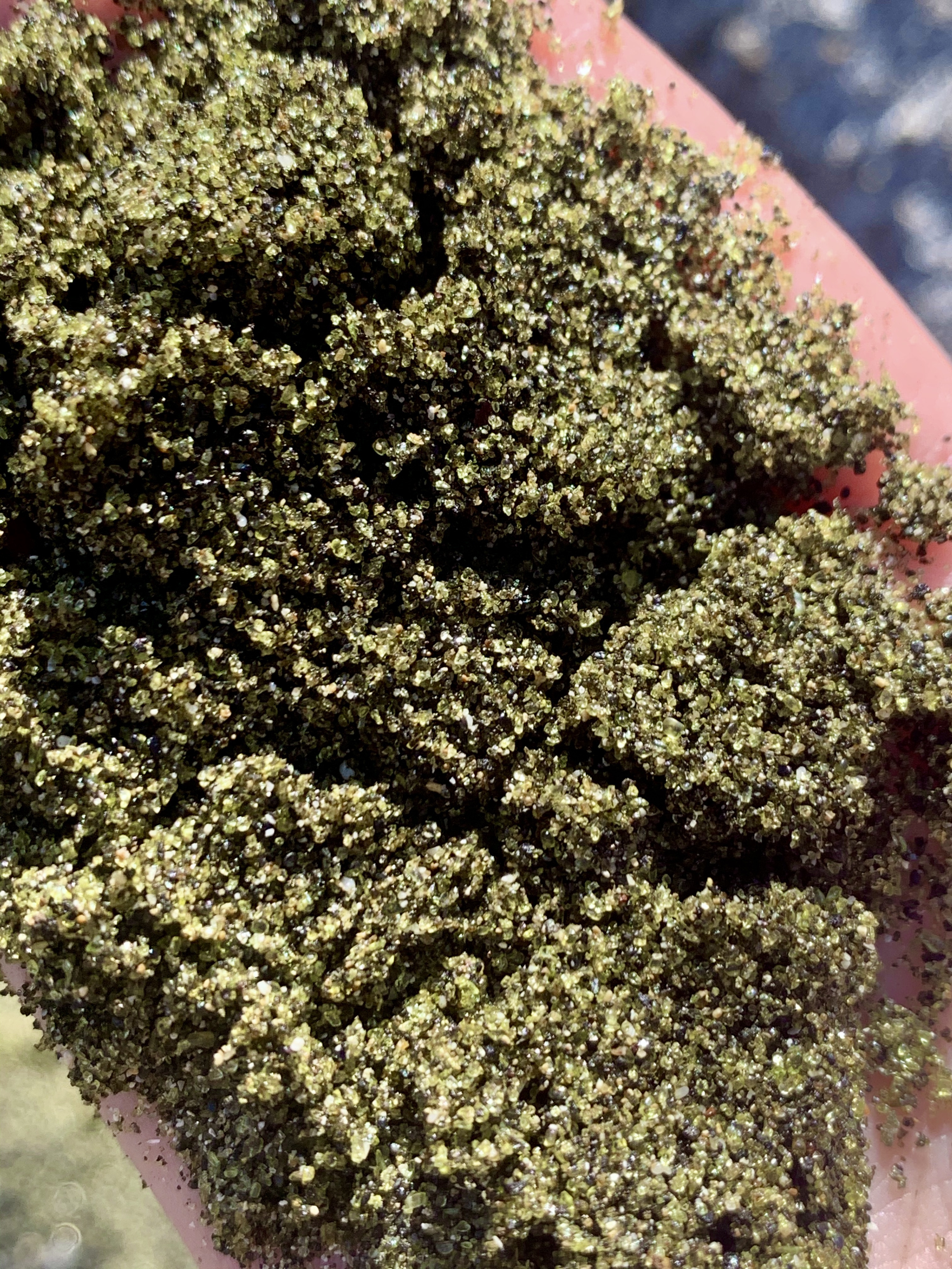 Green Sands is located at the southern tip of the Big Island, about an hour and a half drive from Kona. Famous for it’s…you guessed it…green sand, it is one of only four green sand beaches in the WORLD! The other three are found in Norway, Guam, and the Galápagos Islands, part of the Republic of Ecuador. Now you may be asking yourself, “What makes the sand green?” Excellent question! The sand gets its color from fragmented volcanic material containing olivine. Olivine, known as “Hawaiian Diamond” is a mineral found in lava and forms crystals as it cools. (If you have ever heard of Peridot, it is gem-quality Olivine.)