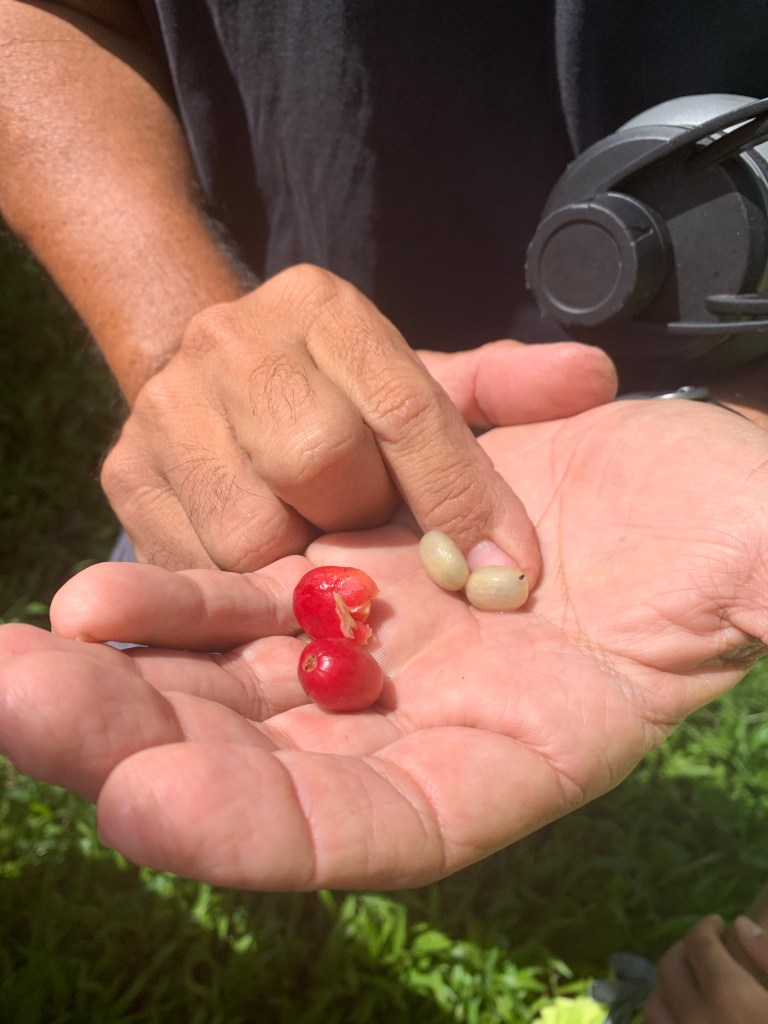 Last week, we had the delightful privilege of touring Greenwell Farms, located in Kealakekua (just south of Kailua-Kona), that has been growing coffee for over 150 years! As we pulled onto the grounds, we were immediately welcomed by a cool ocean breeze, 180 degree orchard views, and a spirit of Aloha from our very knowledgeable guide, Kawena. In true βHawaiian-timeβ fashion, our tour of the grounds was leisurely and relaxed, allowing us to stroll through the lush green acres, full of flowers, fruit trees, and of course, coffee cherry trees.