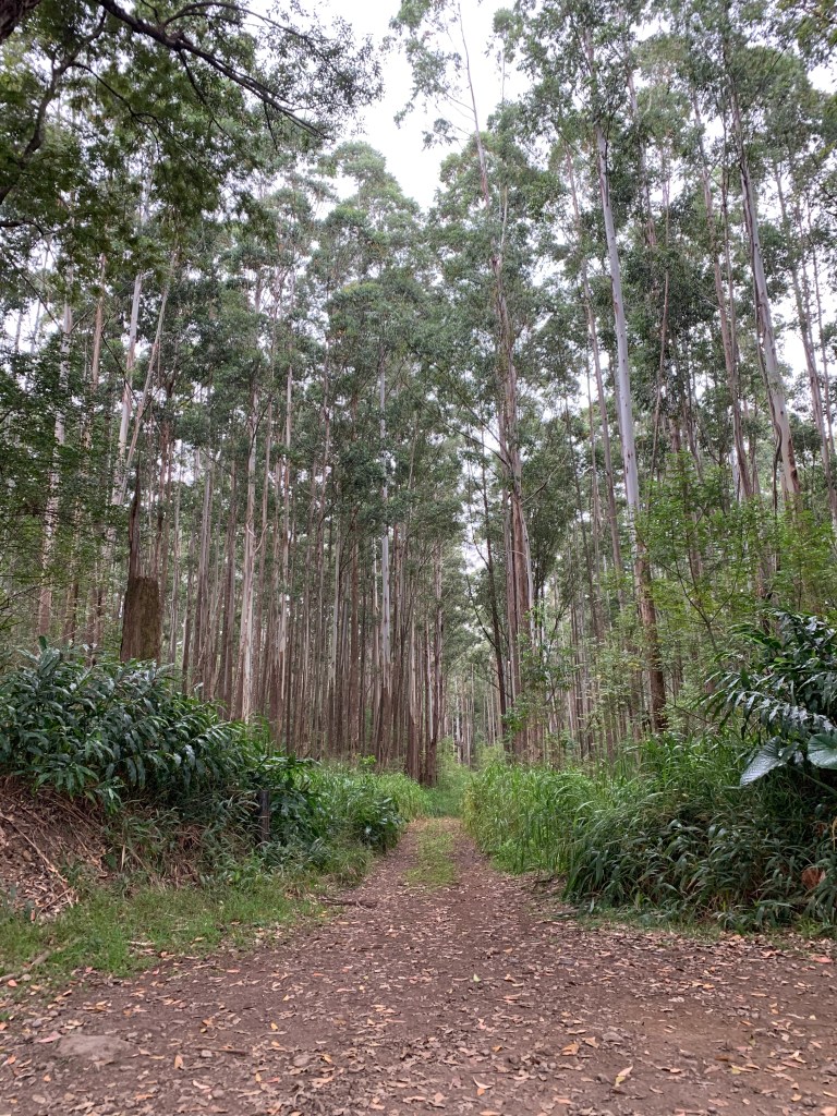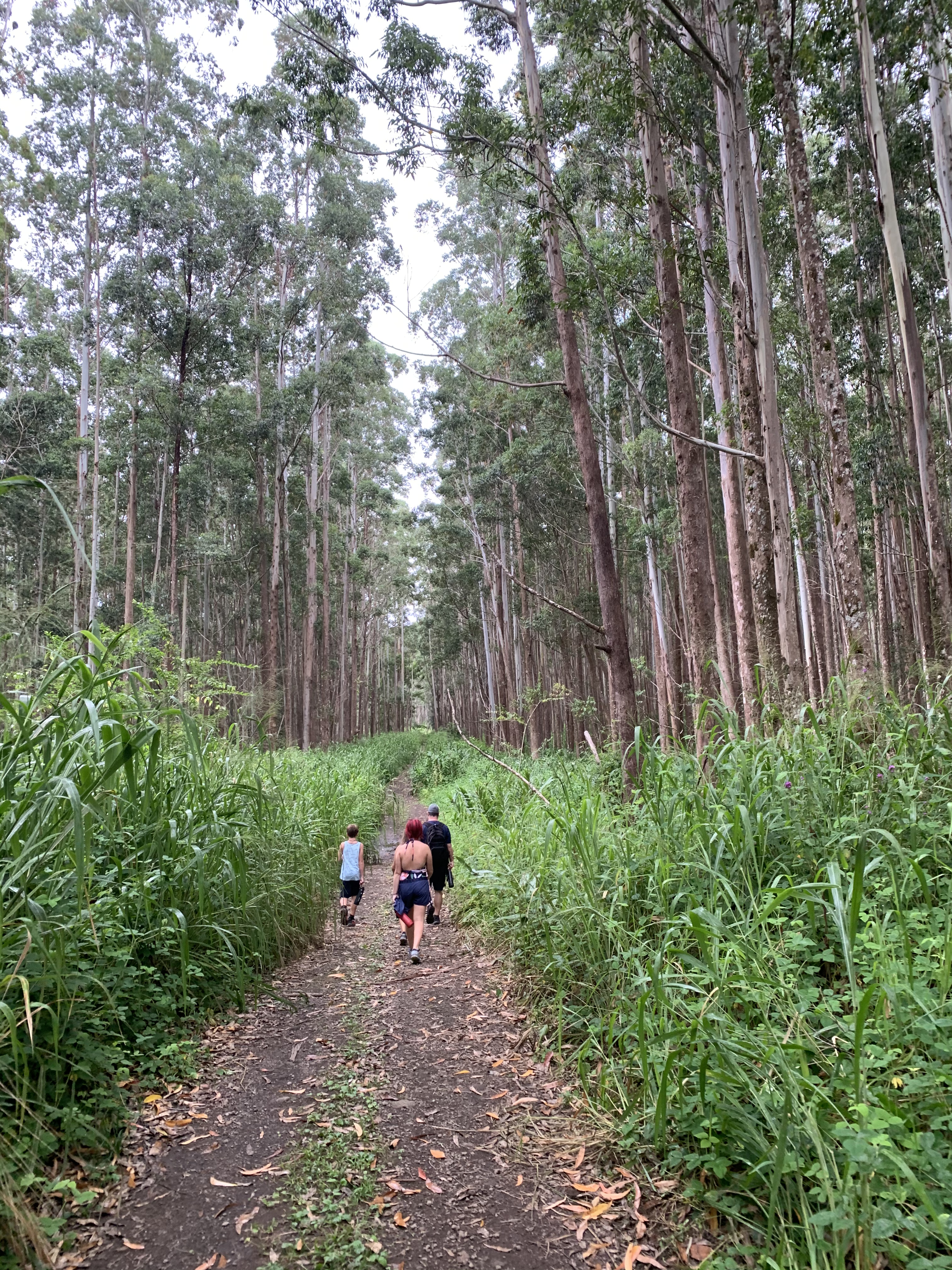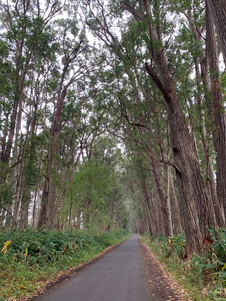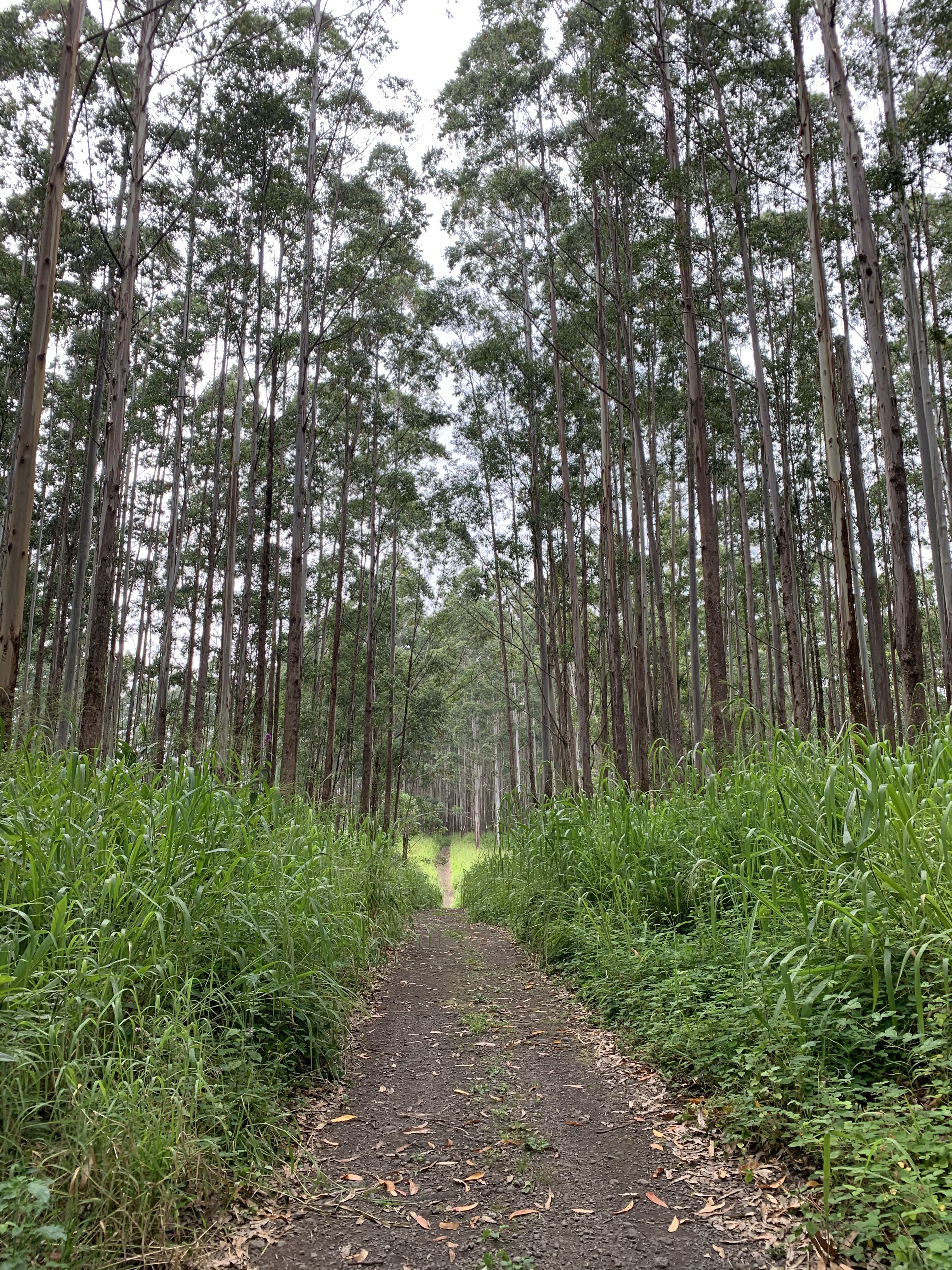 Once on the footpath it becomes clear where the name Mud Lane was derived from as deep ruts of cocoa-colored mud randomly appear along the way. Other than the chatter arising from our brood, the woods are enchantingly quiet with only an occasional twitter far off in the distance. The skyscraper forest of striped eucalyptuses creates a canopy at least 200 ft high. ***Did you know eucalyptus trees shed their bark annually, protecting them from moss, parasites, and fungi? It is also what gives the trunks their striped appearance. Eucalyptus can grow up to 300 ft tall, reaching maturity at just 10 years of age!***