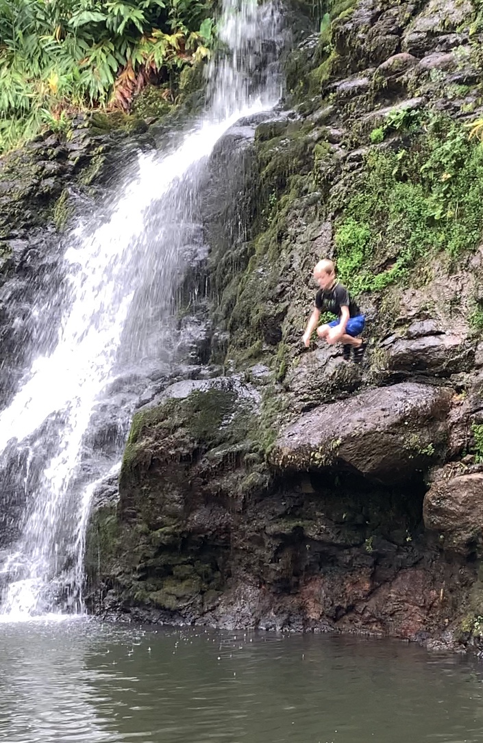 One by one the kids timidly dip their toes in the crisp clear water. The rocky bottom quickly gives way to a plunge pool where a deep underwater depression has formed from the continual erosional forces of the waterfall. We take turns braving the cold and swim over to the boulder protruding from the cliff face. Natural crevices and knobs create a beginner’s climbing wall of sorts, and with little to no finesse we maneuver our way up to the jumping rock. Springing off the slick algae-covered stone, a sense of exhilaration washes over us as we momentarily plunge beneath the cold dark waters.
