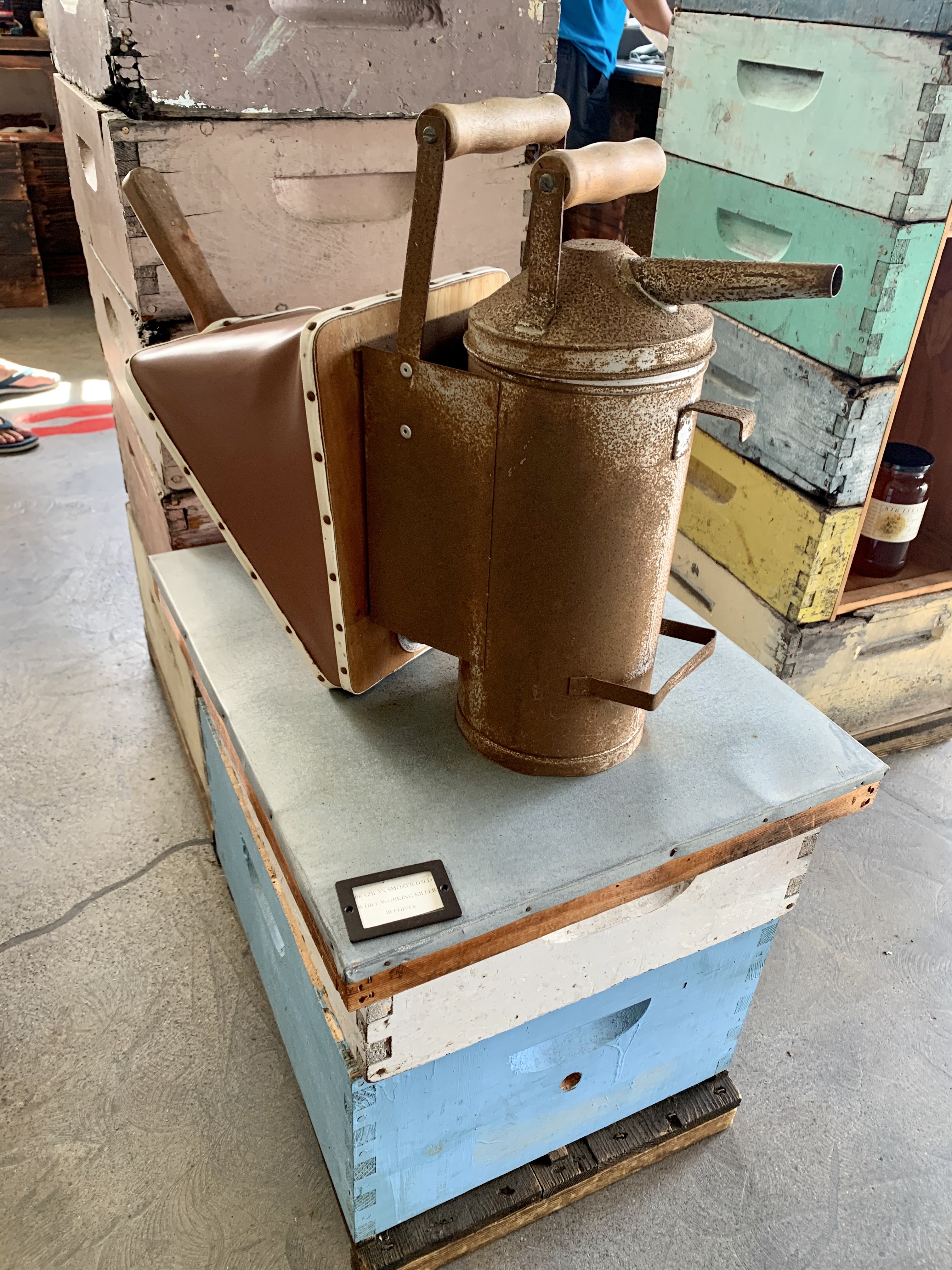 Using layman’s terms, she explains that smoke alerts bees to “grab their valuables, a.k.a. honey” just as if our home was on fire and we wanted to grab what was most important to us. Smoking does not harm the bees and she uses very little as they seem unbothered by her presence. She affectionately refers to this group of ladies in the apiary as her “show girls”. While using her uncapping knife, we learn propolis (bee duct tape) is made by bees to seal their hives. It is so strong that unless you have this special tool, you will most likely not be able to lift the lid off the hive.