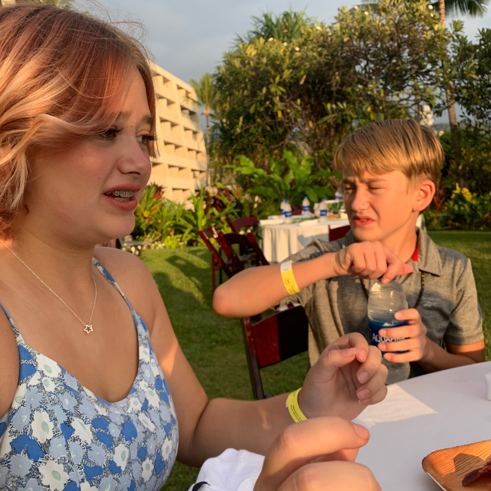 After much research (too much…I overthought it!) I finally settled on Haleo Luau in Kona. With a beautiful setting on the lawn of the Sheraton Hotel facing Keahou Bay, and only five minutes from our rental home, it was the perfect choice. Despite Covid restrictions and social distancing, the luau still felt warm and welcoming. Parties sat at their own private tables, which personally I enjoyed. ***That’s the one thing I don’t like about Japanese Steakhouses. I don’t want to sit with strangers (because admittedly, I’m socially awkward). Luckily we usually have enough kids at the table to take up all the chairs, leaving no room for extras! Downside is all those kiddos can be expensive to feed! ***
