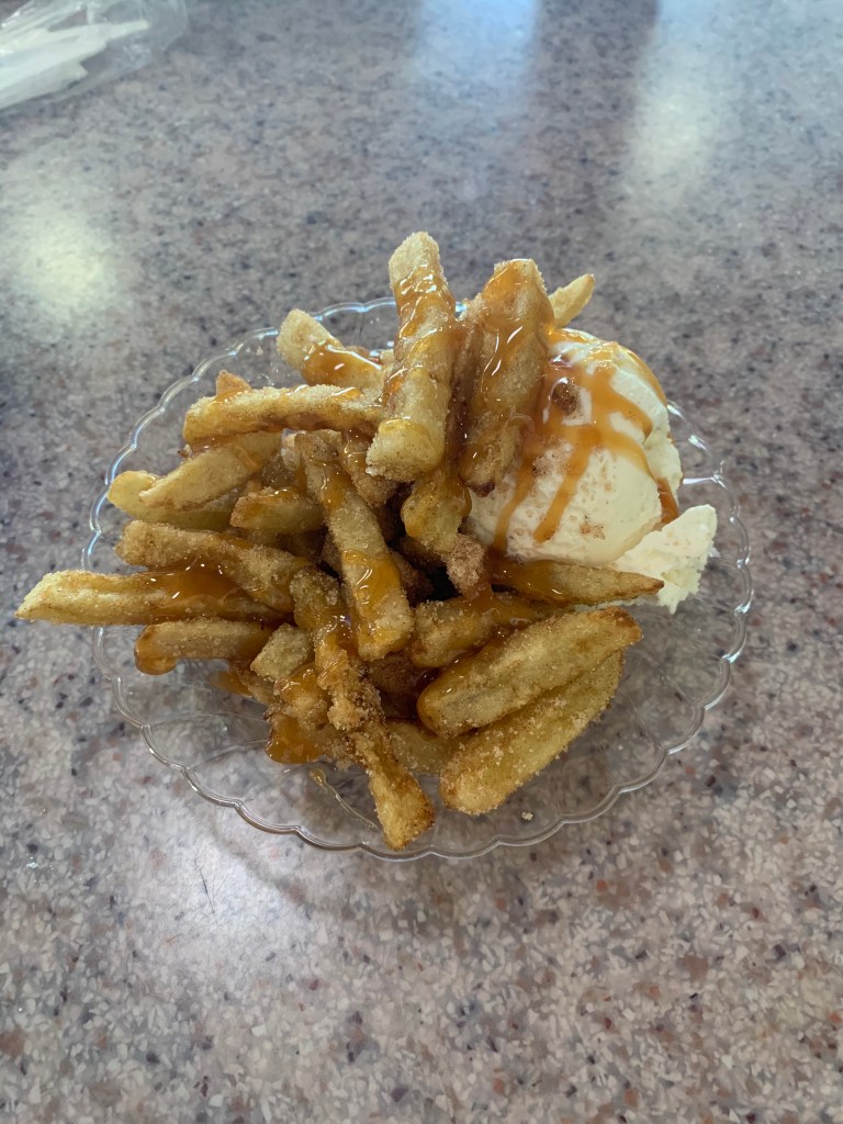 While Sam’s favorite part was the gift shop, brimming with Legos from end to end, mine was the apple fries! Imagine slices of Granny Smith apples, coated with cinnamon and sugar, deep fried, and served with vanilla ice cream! They were DELICIOUS…and I don’t even like apples!