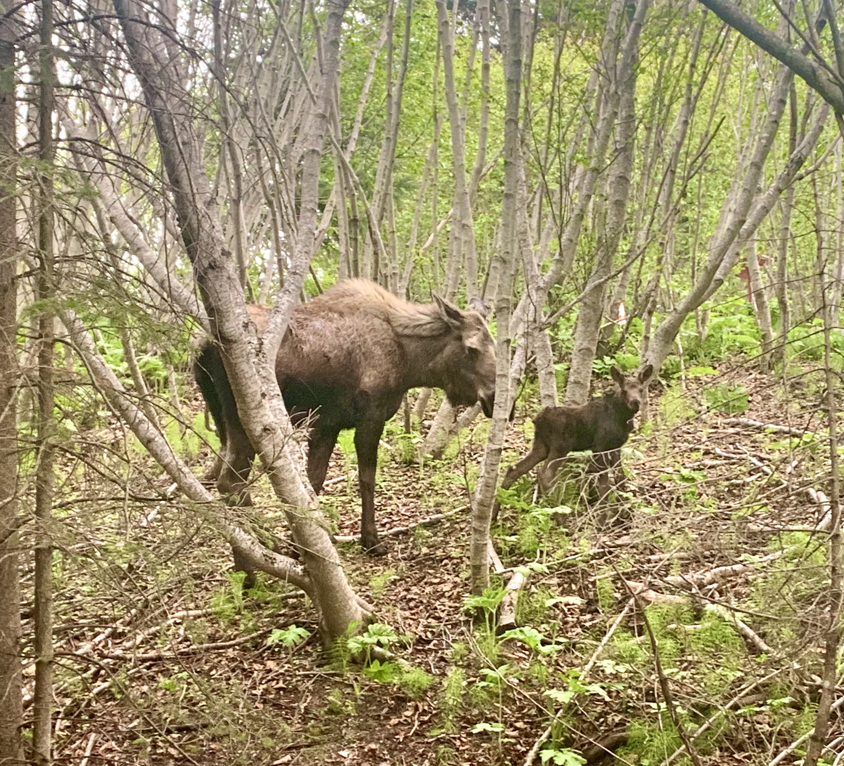 Dave and I enjoyed hours zigzagging between trails and sidewalks, taking in the scenery, wildlife, and fresh air. Bald Eagles graced the skies with their outstretched wings, while cranes tiptoed through the Beluga Slough marsh on their tall, stilt legs. We became casual acquaintances with the local town moose, who proudly showed off not one, but two knobby kneed calves. Always keeping our distance, we would nod “hello” to one another, and go our separate ways.