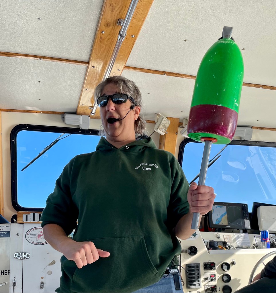 As the town faded from view, the waters became littered with multi-colored ”bobbers.” Those wooden buoys were, in fact, lobster trap markers. Here’s what we learned: