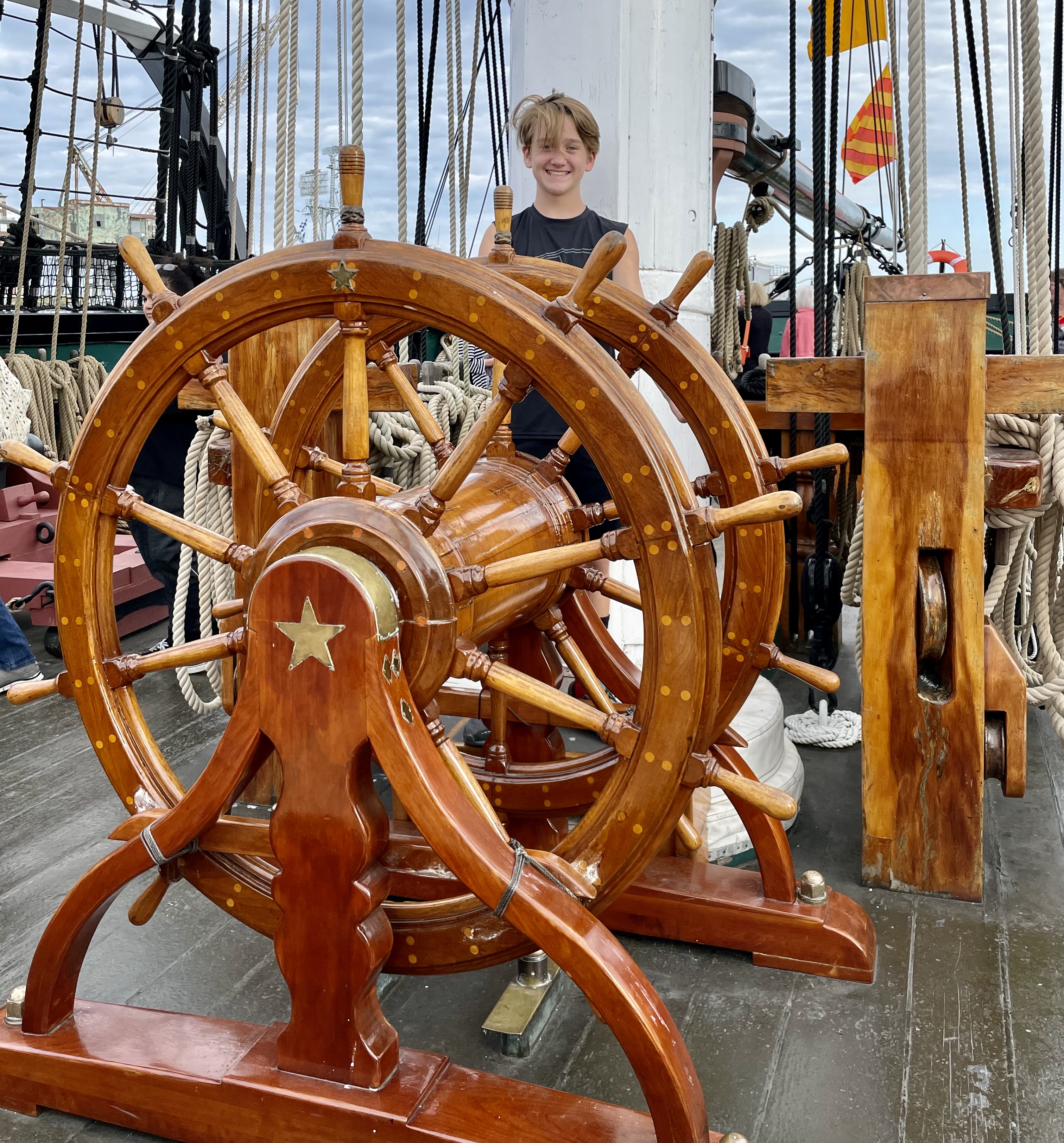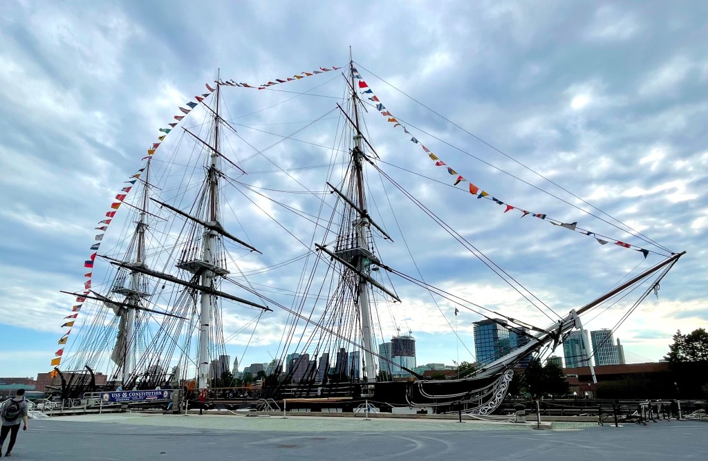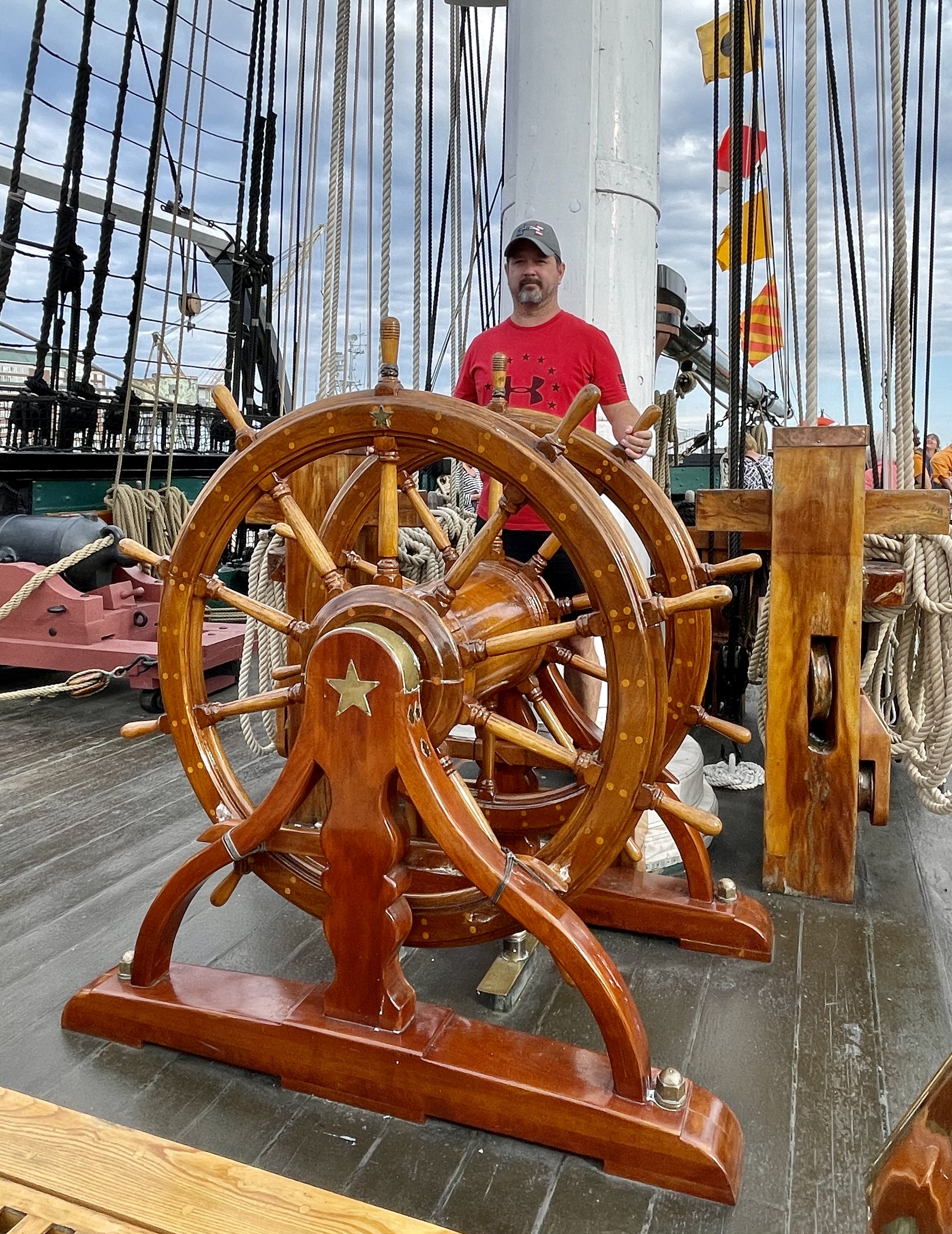 Hot, sweaty, and famished, (Trust me! Sam let us know how hungry he was!) our steps finally led us across the Charles River and into the shade of the majestic U.S.S. Constitution. Constructed in Boston over 200 years ago, she is the oldest commissioned Naval ship still afloat. Having never been defeated in battle, she earned the nickname Old Ironsides, as 18-pound cannonballs bounced off her hull during the capturing of the British Ship, Guerriere. It was hard not to imagine what life would have been like serving aboard the ship when she was underway in all her glory.