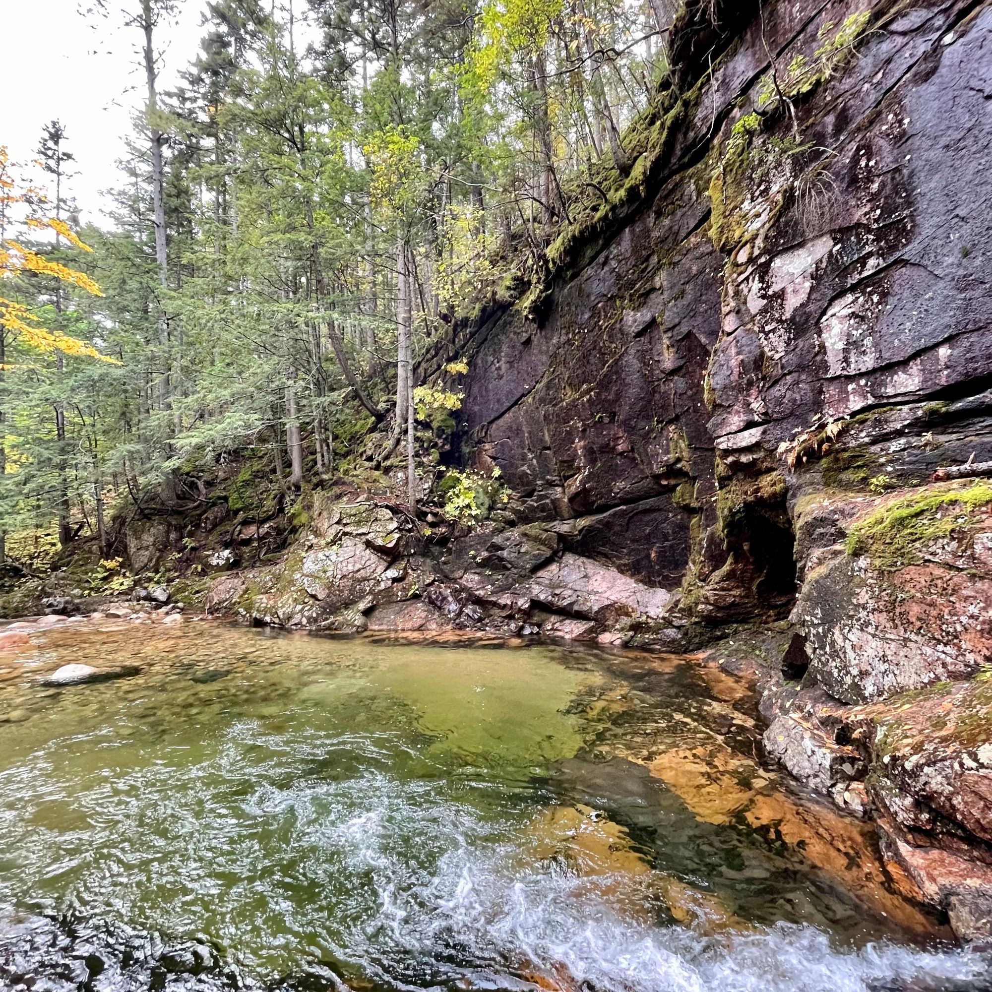 We chose to drive The Kanc west to east, starting in Lincoln. ***Due to the previous advisory of no services, I made sure to stock up on supplies and stop at Dunkin Donuts for my caramel latte before heading out for the next 35 miles. Gotta be prepared!😉*** With numerous trails, covered bridges, and overlooks along the route, we carefully picked and chose which ones made the itinerary. Our first stop was Otter Rocks, a perfect place to picnic with views overlooking the cascading Swift River.