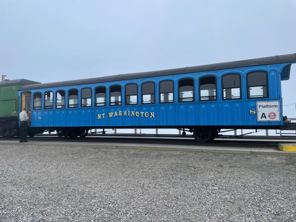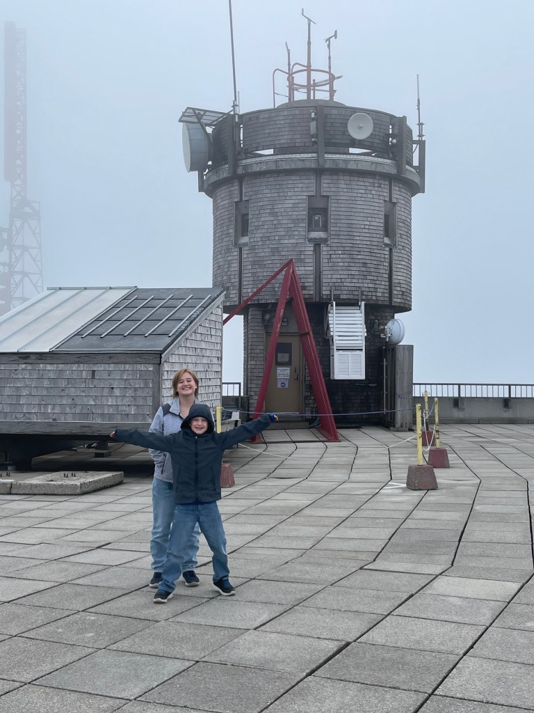 Built in 1868, this 3 mile-long track was the world’s first mountain-climbing cog railway. Each train pulls a single passenger car up the steep incline through 4 distinct ecozones, beginning with postcard-perfect New England forests and then slowly ascending through the clouds into the rocky alpine zone. After finding our seats, we enjoyed the clanky trudge up the mountainside for the next hour before arriving at the Mt. Washington Observatory. With an average incline of over 25%, the kids had a blast pacing up and down the aisle, leaning back on their heels just to be able to stand up straight!