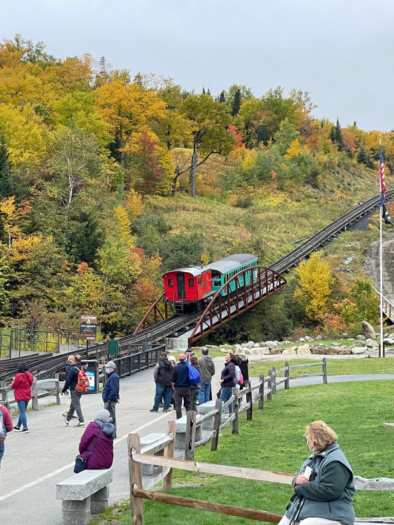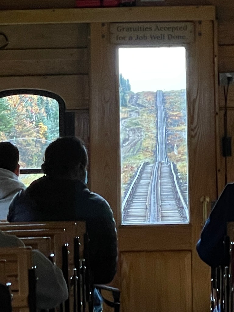 Before long, it was time to pile back into the railway car and head down the mountainside. Fun fact: In order to avoid riding backwards down the track, the seats are mounted on hinges, which can be flipped over to face the direction the train is traveling. Descending through the cloud line, rocky ridges once again became alive with the unmistakable colors of a New England fall. As the depot came into view, the chugga-chugga of the train slowly halted, the wheels screeched, and the brakes hissed. The forlorn cry of the whistle announced our arrival and simultaneously, the conclusion of our ride. Another fun adventure marked off the “Cunningham Crew” bucket list!