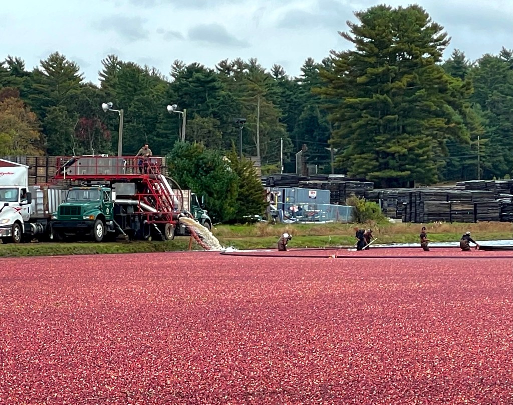 The night before harvest, the bogs are flooded with roughly 18 inches of water. The next morning, the growers use water reel machines, affectionately referred to as “egg beaters,” to knock the cranberries off the vines. Then, because each cranberry contains a unique built-in air pocket, it floats to the surface and awaits round-up. Finally, the berries are corralled and then poured into trucks where they are shipped off to become all kinds of cranberry goodness.