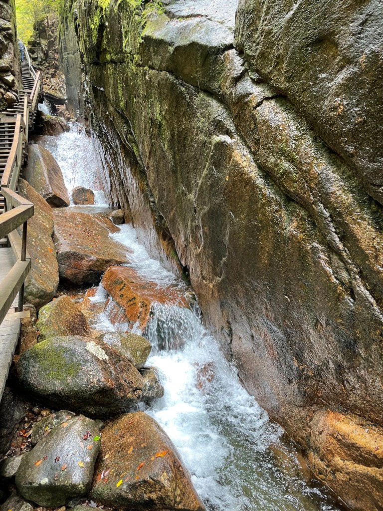 Hidden within the hillsides of New Hampshire, is a tucked away gem known as The Flume Gorge. This would rank as my #1 hike of all time, except the ice cave in Alaska has it beat and The Narrows in Zion National Park was also pretty spectacular. (I’ll blog about those adventures soon.) Therefore, I’ll rate it as #2 or #3, but definitely in the Top-5 list, which is still really good.