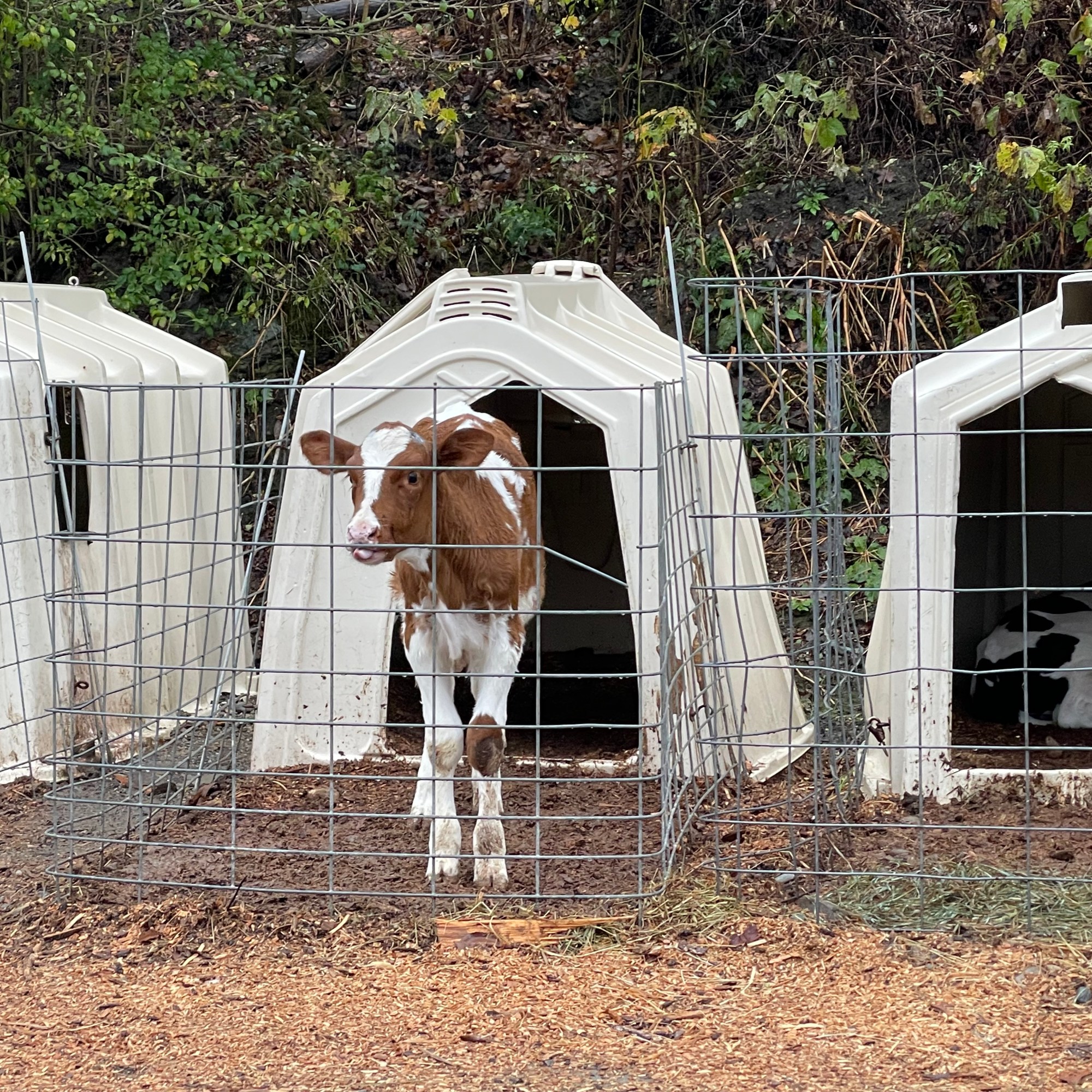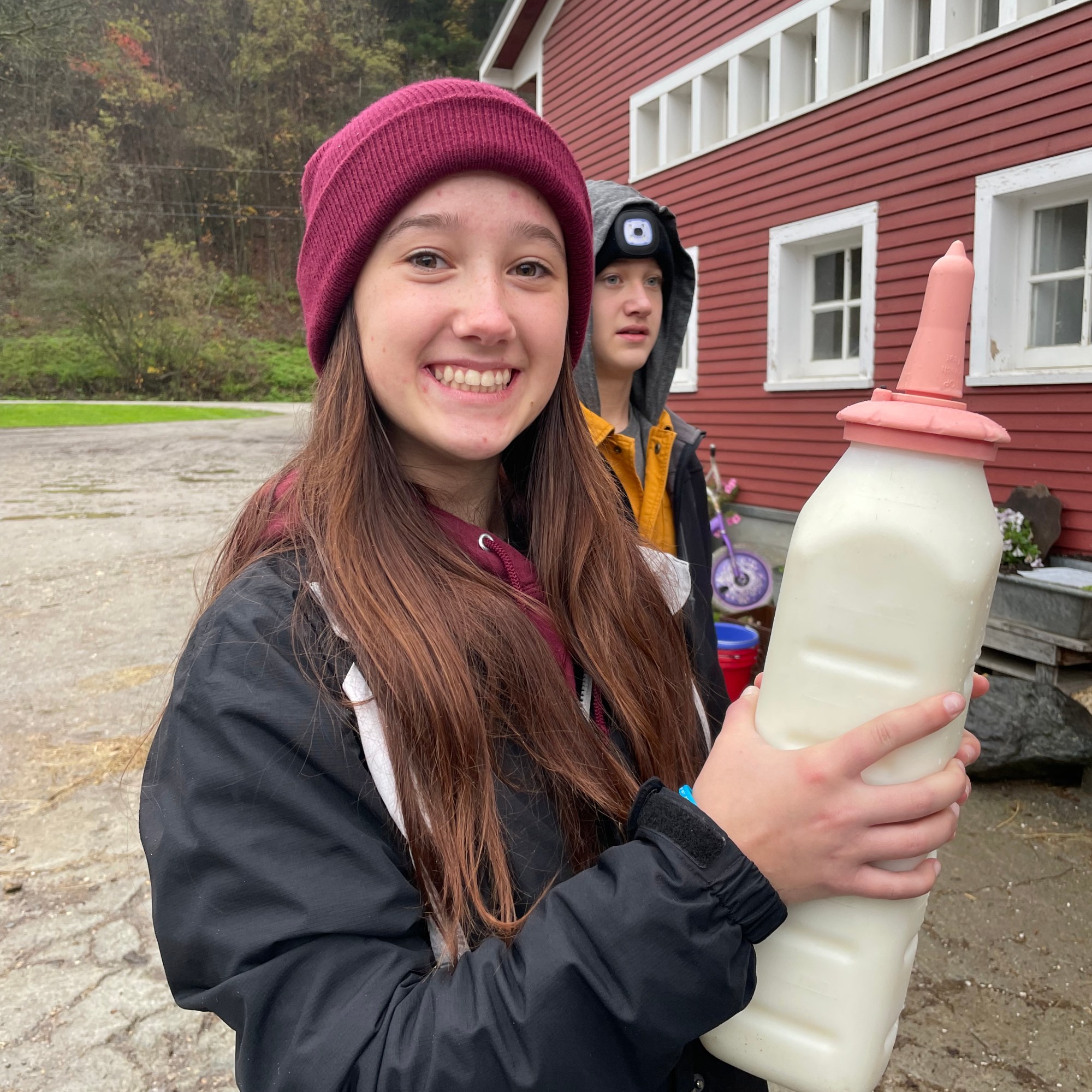 The next morning we were greeted with a hearty breakfast that was just as delectable as the dinner we were served the night before. Luckily our “farm vacation” didn’t include chores at the crack of dawn and guests were allowed to sleep in. After breakfast, dressed in raincoats and mud-boots, we followed our tour-guide Asia, daughter-in-law of Beth and Bob, to the milking barn. As we stepped into the barn (and I mean carefully watched “WHERE” we stepped) the ladies-in-waiting were lined up in their stalls, some already halfway through the milking process. Asia introduced us to their fine black and white Holsteins, naming off a few of her favorites, and gave us a thorough education on the ins-and-outs of operating a dairy farm and the journey a glass of milk takes from cow to jug. We even stopped by the maternity wing to visit with the expectant mothers who were due to give birth any day!