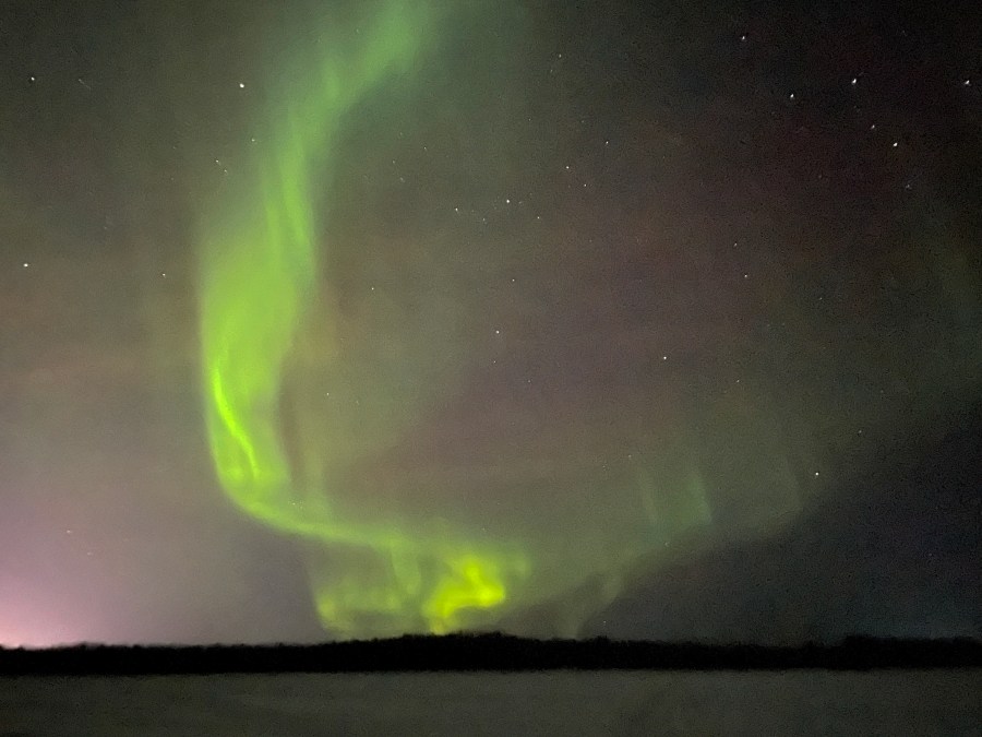 No longer caring about sampling the catch of the day, we threw on our coats and raced outside. Distancing ourselves from the soft glow of the cabin, we ventured further onto the frozen lake and into the darkness. Our gaze scouring the northern sky, she slowly came into focus, almost as if a figment of our imaginations. There dancing high above us, in all her splendor, was Ms. Aurora Borealis herself, and the cost of admission was only a few hours of lost sleep!